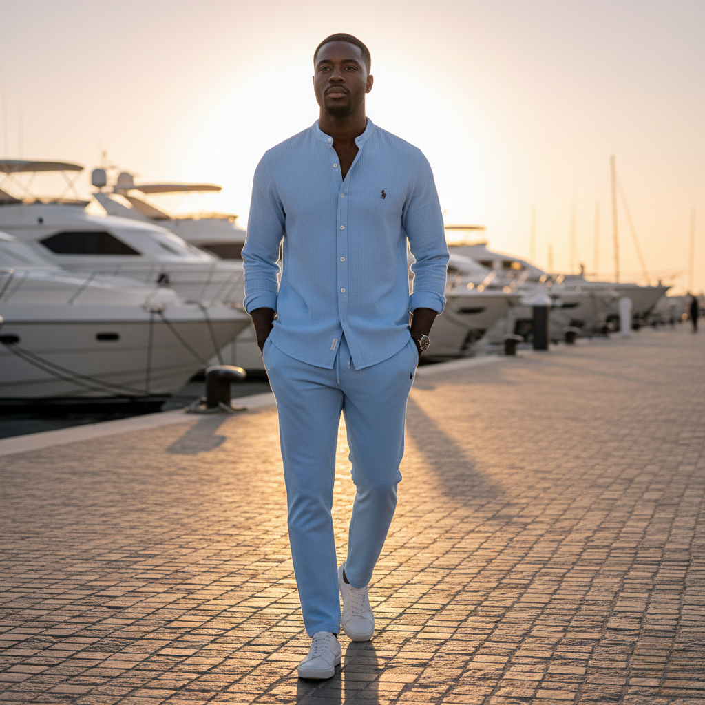 Das perfekte Set für alle, die in dieser Saison mit Stil auffallen möchten. Du bekommst Hemd & Hose im Set – und dazu eine elegante Sonnenbrille gratis. Modern, bequem und jetzt mit unschlagbarem Mehrwert. Nur solange der Vorrat reicht!